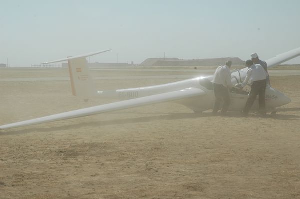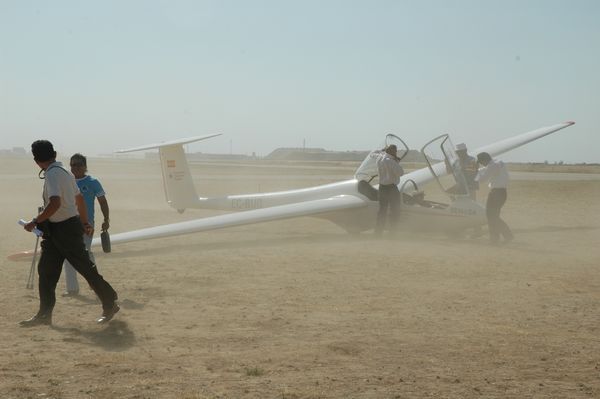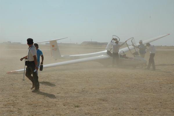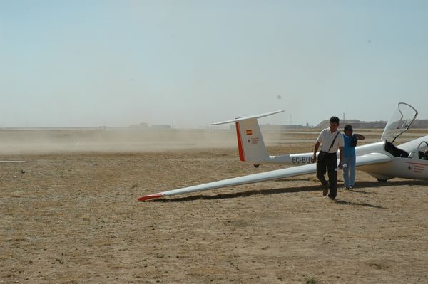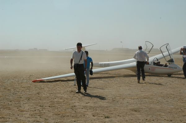 En las fotos una secuencia de como un torbelllino a nivel de suelo se come al avión, al piloto que está dentro, amarrado y sin tiempo ni de soltarse no de cerrar la cabina, y a los que le rodean, incluido el fotero (yo).